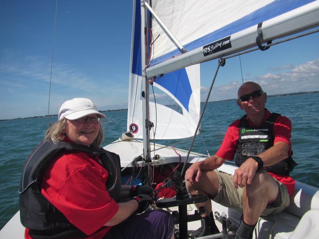 A total of around 20 disabled sailors and volunteers came along over the course of the week-long event, either to race the Sussex Sailability RS Ventures in the handicap fleet or to take the opportunity to explore Chichester Harbour in the Sonar keelboats.